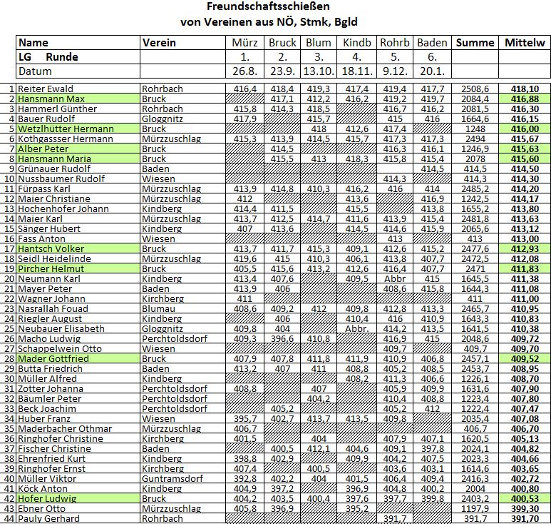 Allgemein Freundschaftsschießen Senioren (6) 9 Jahren ago Manuela Nach 6 von 11 Runden die Ergebnisse der SenIII beim Freundschaftsschießen: Continue Reading Previous 3. Runde ObersteiermarkcupNext 1. Qualifikation Landeskader st.-aufg. Schreibe einen Kommentar Antworten abbrechenDu musst angemeldet sein, um einen Kommentar abzugeben.