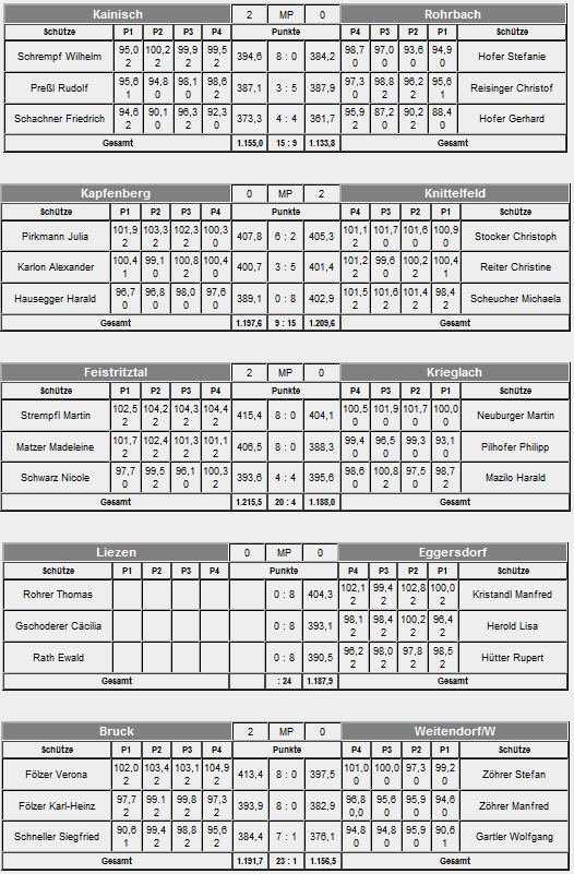 Nach dem 22:2 in Runde 7 legen unsere Schützen am 11. März in Runde 8 in Feistritztal nach und gewinnen auch gegen Weitendorf/W. deutlich: