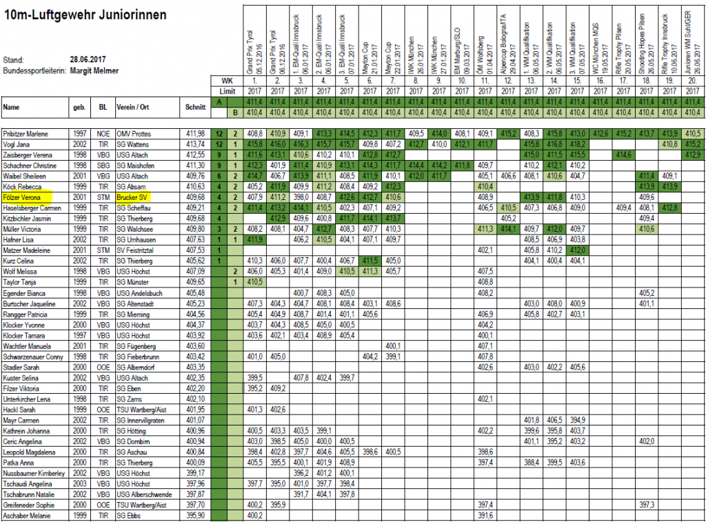 Mit 28. Juni wurde die Rangliste des Österreichischen Schützenbundes aktualisiert, mit einem sehr erfreulichen Ergebnis: