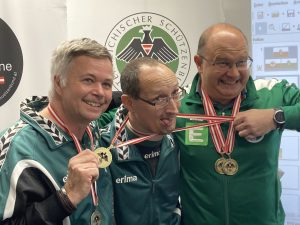 Der nächste Starter am Freitag war Heinz Fölzer in der Senioren 1 Klasse bei den Stehend Frei Luftgewehrschützen. Nach durchwachsenem Beginn und einer für ihn katastrophalen 2. Serie konnte er in den Serien 3 und 4 schlieslich sein Pozential abrufen und so noch auf Platz 3 mit einem Gesamtergebnis von 398.9 Ringen (98.9,96.9,101.7,101.4) landen. Mit der steirischen Mannschaft konnte er ebenfalls Platz 3 erringen.