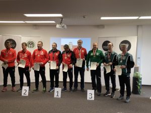 Den ersten Wettkampf hatte Arnold Hansmann in der Klasse Luftgewehr Stehend Aufgelegt Klasse Senioren 1. Arnold startete gut in den Wettkampf, die 2. Serie war dann etwas niedriger, aber die Serien 3 und 4 wieder sehr stark. Mit einem Gesamtergebnis von 418.4 (105.1,102.8,105.3,105.2) konnte er schliesslich Platz 13 im Einzel und Platz 6 mit der Mannschaft erringen.