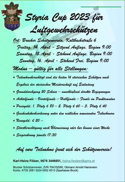 Von 14.04.-16.04. fand im Brucker Schützenverein der 1. Styria Cup statt.
