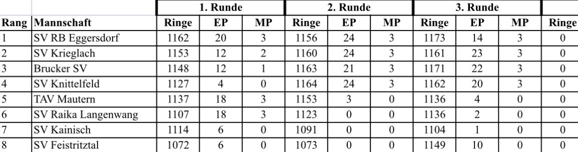 Zum Ende des Jahres fanden sich die Mannschaften der steirischen Landes- und Unterliga in Feistritztal ein. Die Mannschaft der Landesliga konnte einen erfolgreichen Jahresabschluss verbuchen und gegen den Raika Langenwang mit 22:2 (Verona 8:0, Heinz 6:2 und Sophie H. 8:0) gewinnen.