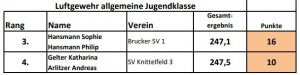Helmut Leitner und Sarah Köck (das einzige Team ohne verwandtschaftlichen Hintergrund an diesem Tag) konnte den 7. Rang erreichen. Für beide Schützen war es die erste Mixed Team Landesmeisterschaft.