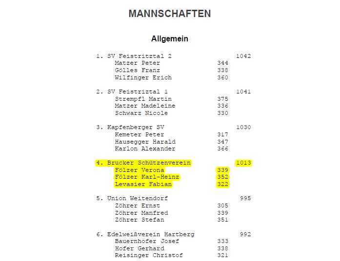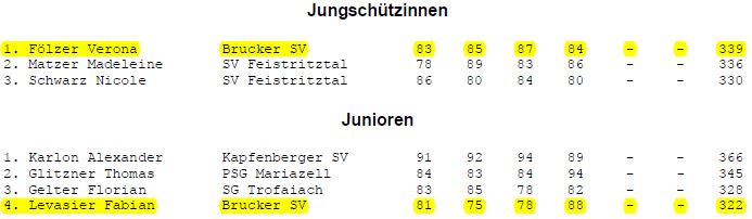 Mit der vom 16.-17. Juni in Trofaiach ausgetragenen Landesmeisterschaft Kleinkaliber 50 m ist auch die Sommersaison im Schießsport auf ihrem Höhepunkt. Mit 3 Teilnehmern stellt der Brucker Schützenverein Schützen in 3 verschiedenen Klassen und eine Mannschaft. Wir gratulieren herzlich zu den Ergebnissen: